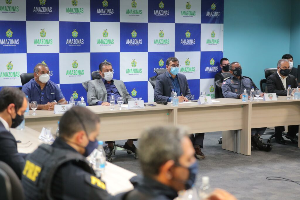 “O objetivo da reunião foi apresentar todas aquelas ações que estão sendo desenvolvidas pelas nossas forças de segurança; e o apoio que nós estamos buscando diante dos eventos de violência. Nós estamos com todo o nosso efetivo e nossas viaturas nas ruas”, disse Wilson Lima, ao destacar o esforço dos agentes de segurança.