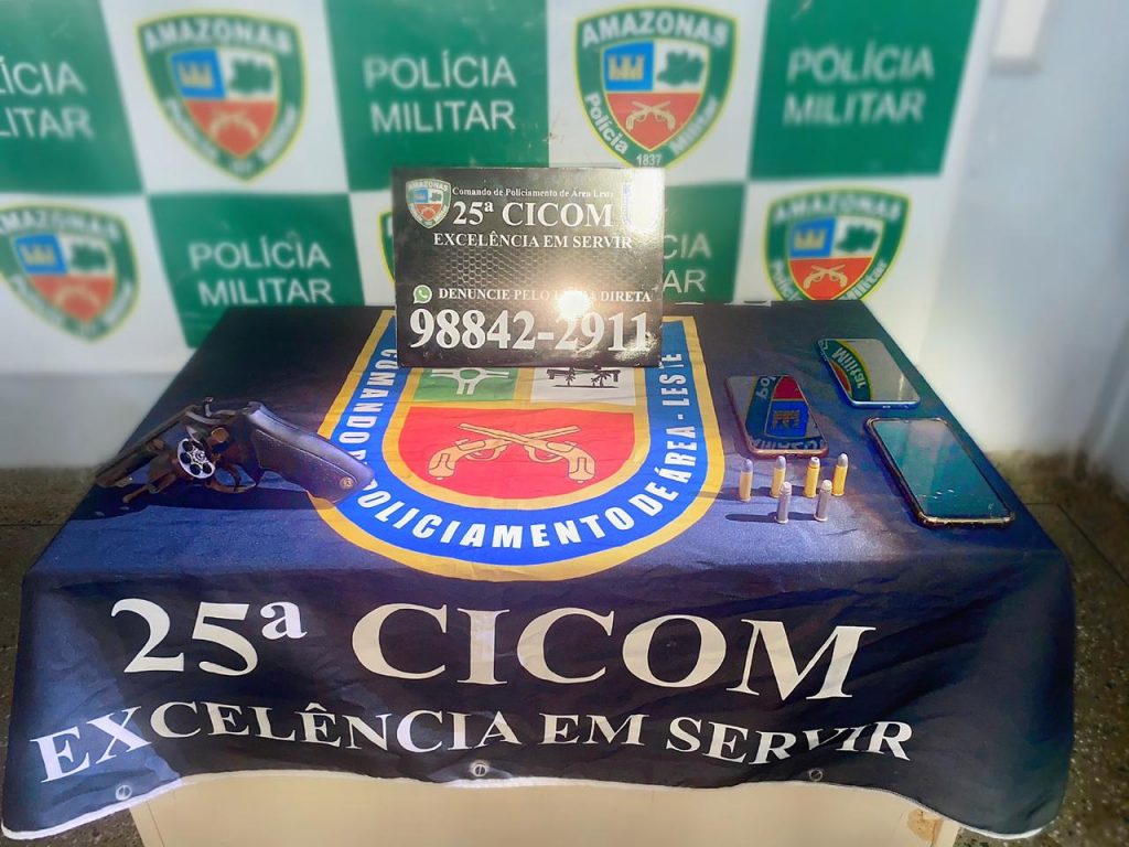 Policiais militares da 25ª Companhia Interativa Comunitária (Cicom), na noite desta segunda-feira (24/08), detiveram um homem de 22 anos por roubo e apreenderam um adolescente de 16 anos por ato infracional análogo ao crime de roubo, no bairro Zumbi dos Palmares, zona leste da capital. Com eles, os policiais apreenderam um revólver calibre 38, seis munições intactas, três aparelhos celulares e uma motocicleta de placa JWZ-2404.