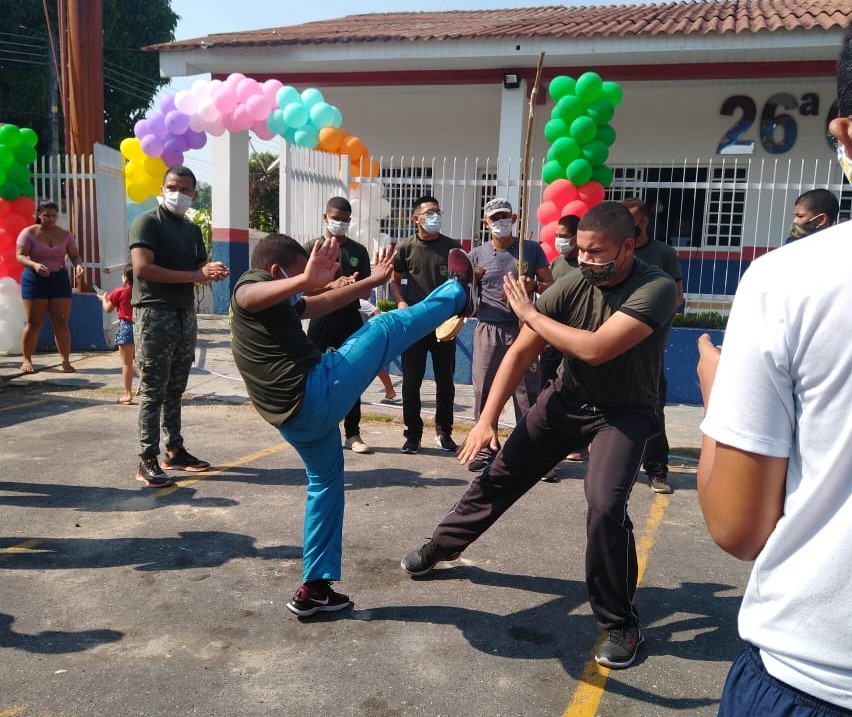 Policiais militares da 26ª Companhia Interativa Comunitária (Cicom), em parceria com o Lar São Francisco, promoveram na manhã desta sexta-feira dia (09/10), uma manhã repleta de atividades, brincadeiras e jogos educativos em comemoração ao Dia das Crianças, da sede da Cicom, no bairro Santa Etelvina, zona norte de Manaus.