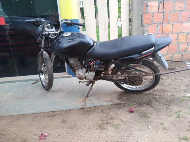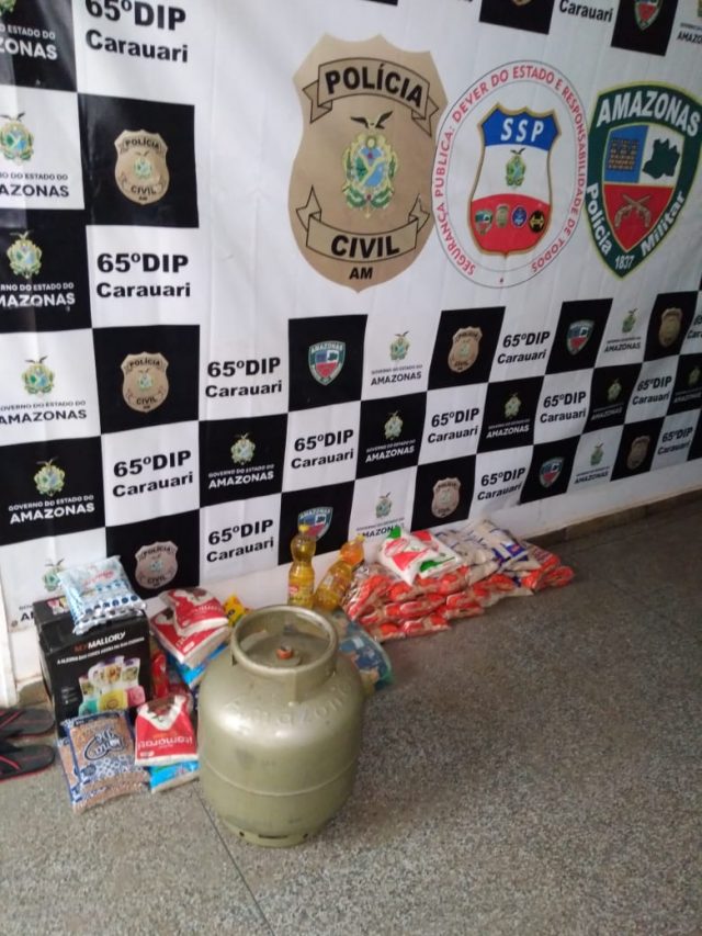 Os policiais foram ao local indicado e lá encontraram um liquidificador, dois quilos de feijão, 10 quilos de arroz, seis quilos de açúcar, três pacotes de amido de milho, três pacotes de café, quatro quilos de macarrão, duas garrafas de óleo, 12 pacotes de bolacha, uma caixa de leite líquido, uma botija de gás de cozinha, uma motocicleta Honda CG 150, preta e uma arma de fogo do tipo garrucha calibre 22.
