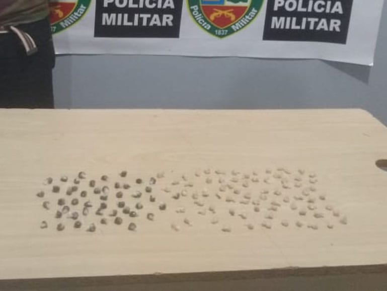 A equipe, durante patrulhamento de rotina na rua Campo Grande, avistou um homem em atitude suspeita. Os policiais se aproximaram e realizaram uma revista pessoal e, com ele, foram encontradas 48 porções de skank, 75 porções de oxi e um aparelho celular. Ele foi questionado e confessou a venda dos entorpecentes no local.