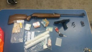 Durante as diligências os policiais prenderam com Paulo Roberto uma pistola nove milímetros, um rifle calibre 22, 14 munições intactas, sendo nove de nove milímetros e cinco de calibre 38, além de R$ 5.010 mil em espécie. Com Alex as equipes apreenderam 14 porções de maconha e R$ 249 em espécie. Já com Wender foram apreendidas 48 trouxinhas de oxi, um tablete de maconha e R$ 55 em espécie. Franknaldo foi preso em posse de 30 trouxinhas de maconha do tipo skunk. Com Rosinaldo os policiais apreenderam três porções de maconha e um aparelho celular roubado. Já Jucélio estava em posse de 16 porções de maconha.