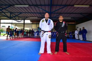 “É um projeto voltado à comunidade, para quem tem vontade de treinar e não tem condições. Temos sete campeonatos por ano e as nossas crianças competem. Temos três que são feras e já ganharam medalhas e troféus. Estamos trabalhando para retirar essas crianças das ruas. Nós ajudamos os alunos carentes, alguns que não tem como comprar quimono, dinheiro para se inscrever em campeonato. Eu consigo levar oito a 10 crianças para competir”, relatou o sargento.