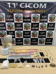 Ao adentrar pela rua Chuva Branca, os policiais detiveram um homem que tentou empreender fuga e, durante revista pessoal, foram encontradas uma certa quantidade de dinheiro, em notas pequenas, e algumas porções de supostamente drogas. Questionado sobre o material, o suspeito revelou que buscava as drogas em uma residência nas proximidades, com uma mulher que seria esposa de traficante conhecido na área.