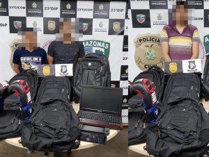A Polícia Civil do Amazonas, representada pelo titular do 23º Distrito Integrado de Polícia (DIP), delegado Henrique Brasil, indiciou Janderson Braga Moreira, 35, e Luiz Fernando da Silva Caxeixa, 30, pela autoria de 15 furtos qualificados, e Clécio Rodrigues Oliveira, 31, pela receptação dos produtos furtados. A equipe de investigação do 23º DIP chegou até o trio, após ação deflagrada ao logo desta sexta-feira (26/7).