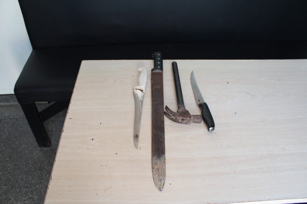 Os policiais apreenderam facas, facões e um martelo. Segundo o comandante, um dos presos já tinha passagem pela polícia. “Vamos verificar se há algum mandado (de prisão) em aberto”, afirmou.