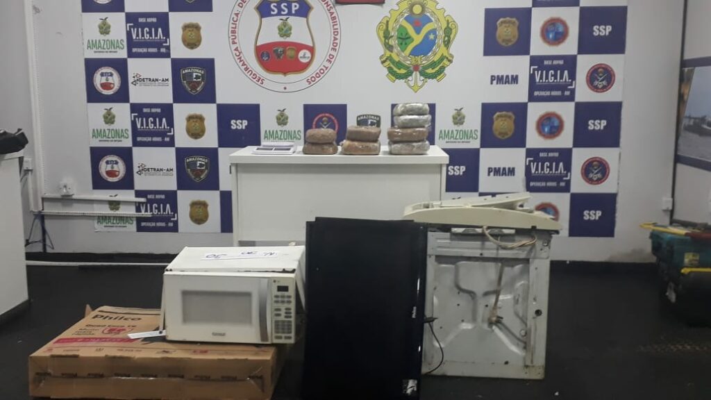 Em seguida, a cadela indicou aos policiais que no porão da embarcação, dentro de aparelhos micro-ondas e TV, estavam escondidos mais quatro tabletes de drogas. Após verificarem as câmeras de segurança, as equipes identificaram um homem entregando as encomendas, ainda no município de Tefé.