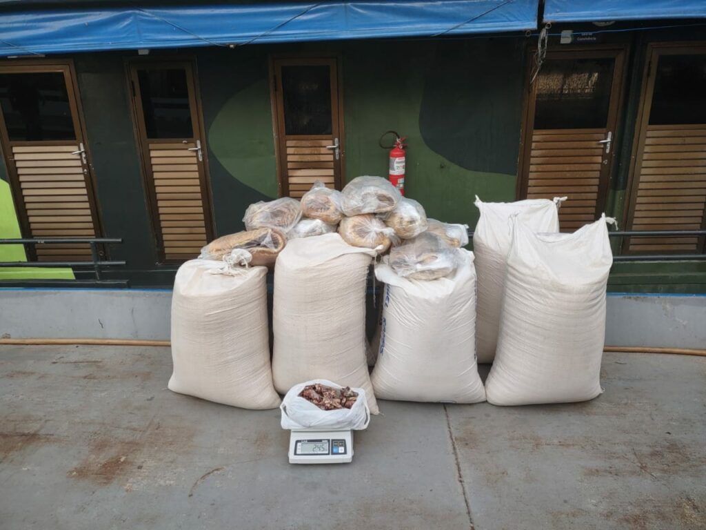 Ao verificarem o material, perceberam que dentro das sacas também estavam acondicionados o pescado ilegal. No momento em que flagraram o crime, os policiais questionaram o dono da embarcação sobre os documentos que legalizam a pesca e venda de pirarucu. O homem informou que não possuía e negou estar comercializando o peixe.
