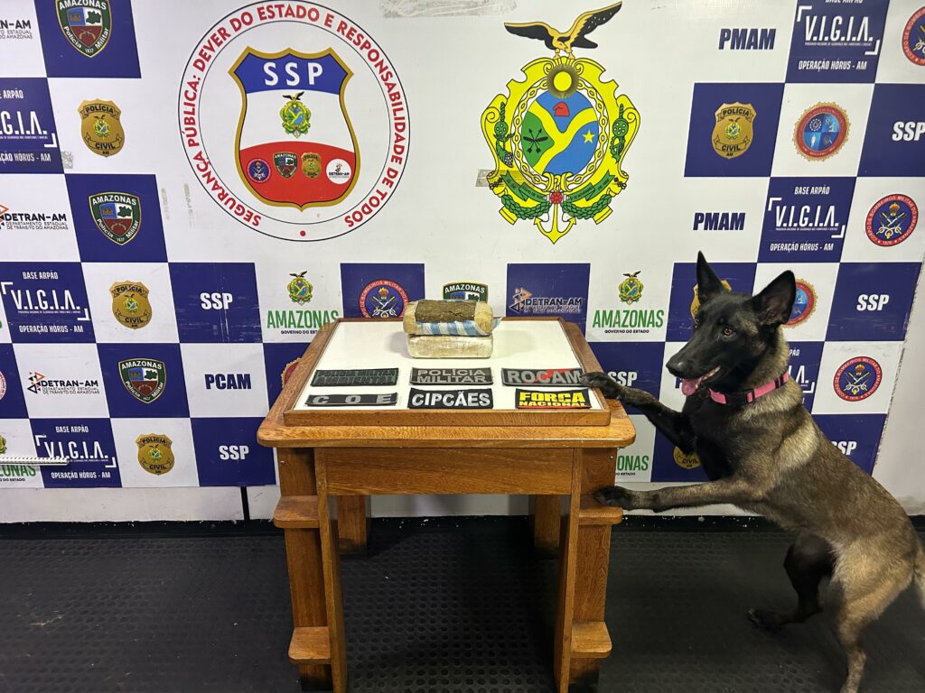 Durante a fiscalização, a cadela de faro para narcóticos Athena, da Companhia Independente de Policiamento com Cães (CipCaēs), sinalizou que dentro de uma lixeira no andar de cargas haviam entorpecentes. Ao abrirem o recipiente, os agentes encontraram as drogas escondidas.