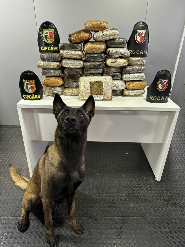 Ao todo, foram apreendidos 35 tabletes de maconha com aproximadamente 37 kg do entorpecente. Toda a materialidade foi apresentada para a autoridade de polícia da Base Arpão 2 para os procedimentos de polícia judiciária.