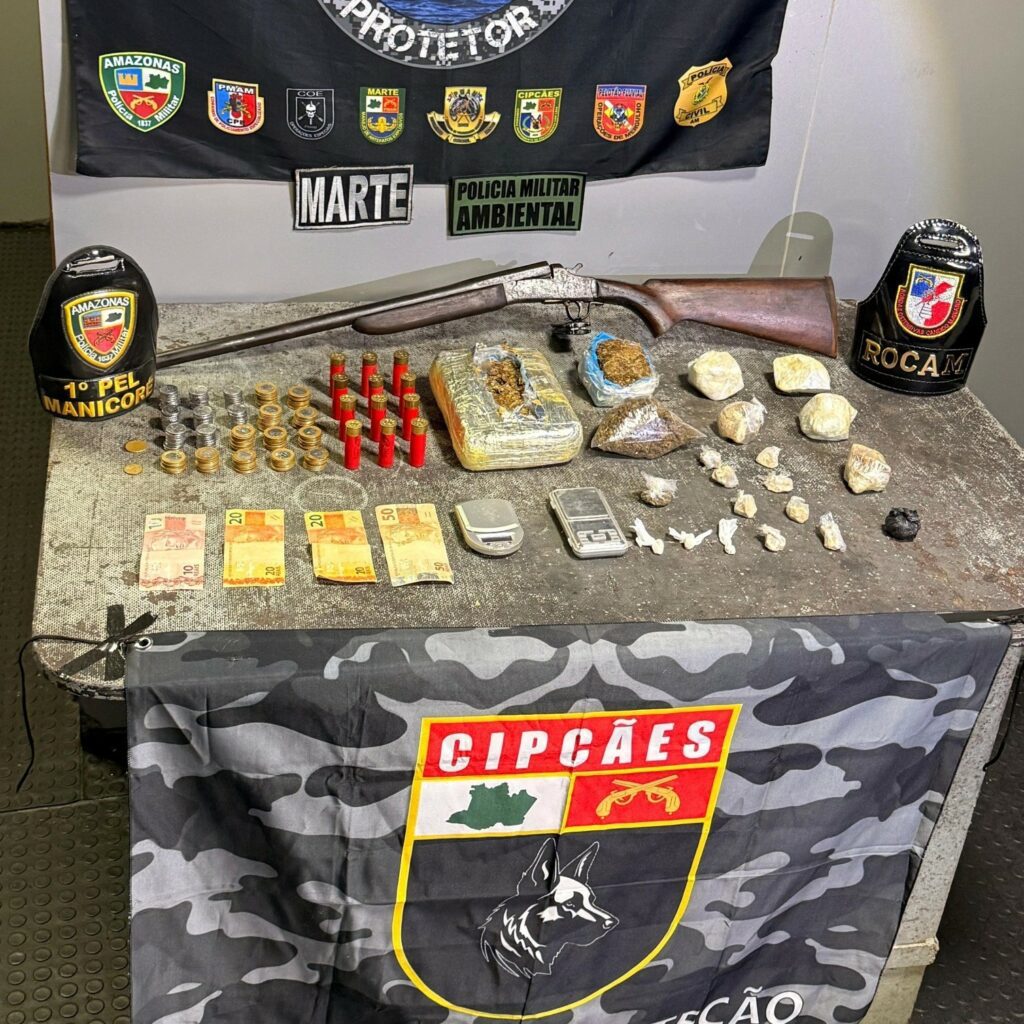 Atuando sob a coordenação da Secretaria de Segurança Pública (SSP-AM), a equipe policial recebeu denúncias anônimas de que um homem estaria comercializando entorpecentes e portando arma de fogo na comunidade Vila Fernandes.