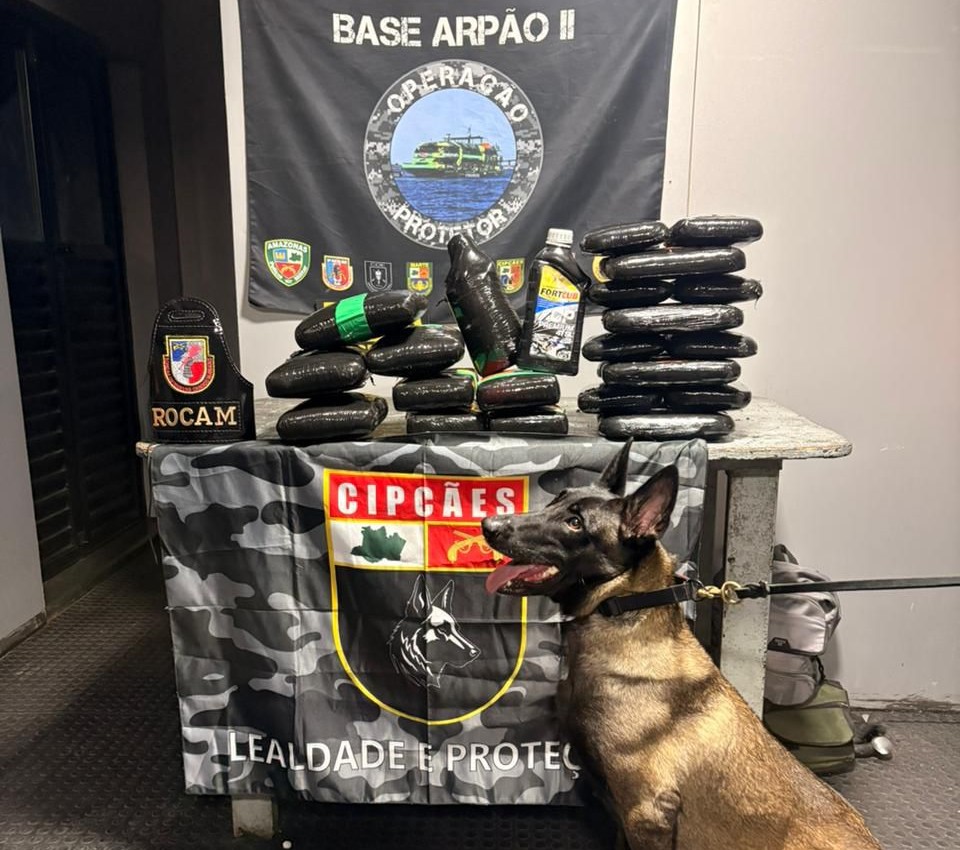 A Polícia Militar do Amazonas (PMAM), em operação na Base Fluvial Arpão 2, apreendeu, na madrugada desta quinta-feira (08/01), 35 quilos de entorpecentes, incluindo dois litros de óleo de maconha (BHO). Um homem de 29 anos foi preso em flagrante por tráfico de drogas.