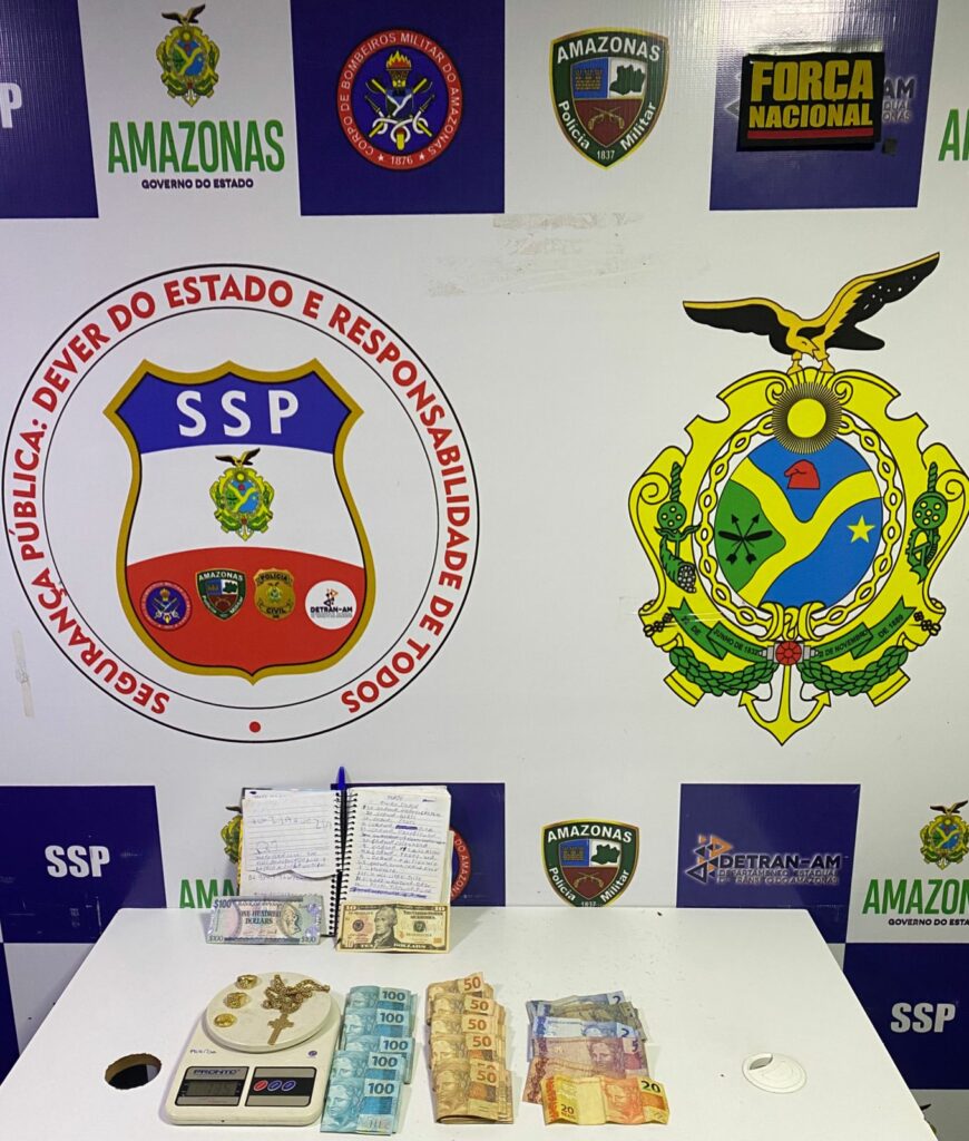 Com o suspeito também foram apreendidos R$ 9 mil em espécie, além de dinheiro guianense. O homem, juntamente com o material apreendido, foi levado à Delegacia de Polícia Civil da Base Arpão.