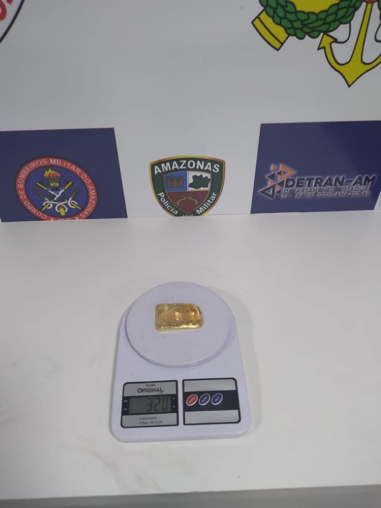 Nesta sexta-feira (18/12), policiais da Base Fluvial Arpão efetuaram a prisão em flagrante de um homem por transporte de ouro de forma irregular. Uma barra de ouro, de 320 gramas, avaliada em R$ 80 mil, que estava escondida em um tênis foi apreendida.