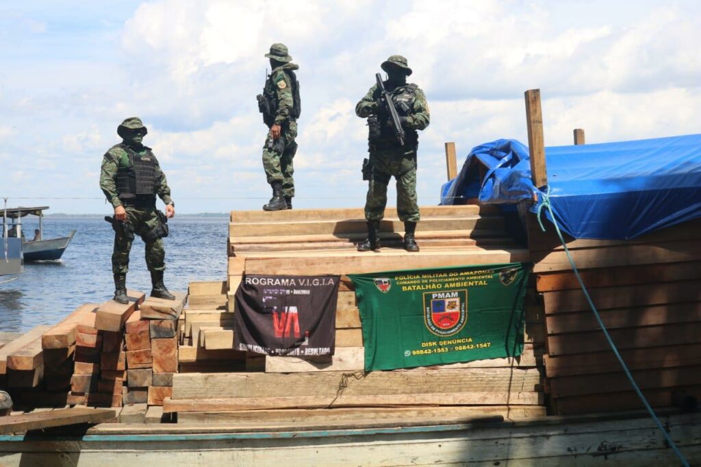“No momento da abordagem, foi constatado os suspeitos realizando o desembarque das madeiras ilícitas. Foi solicitado do proprietário o documento de origem florestal e não foi apresentado nenhum tipo de documentação. Mediante a esse fato, foram apreendidos a embarcação, toda carga ilegal de madeira, além dos caminhões que faziam o transbordo dessa carga”, relatou.