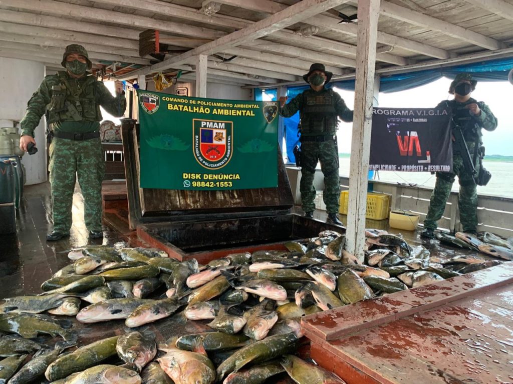 No início da manhã, os policiais do BPAmb, ainda em patrulhamento fluvial, apreenderam em uma embarcação de pesca de grande porte, nas proximidades de Manacapuru, uma carga de 7,5 toneladas de peixe, a maior parte da espécie tambaqui. Duas toneladas do pescado estavam fora do padrão para pesca, comercialização e consumo. O proprietário do barco e responsável pela carga também não apresentou nenhuma documentação aos policiais. Depois dos procedimentos, o responsável recebeu voz de prisão e foi detido junto com a materialidade.