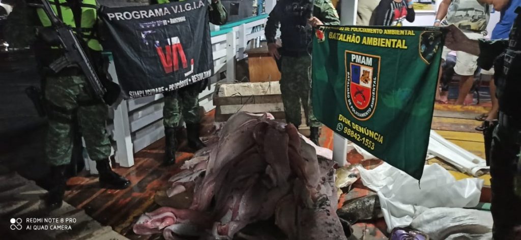 Nesta quarta-feira (08/07), por volta das 3h15, policiais militares do Batalhão de Policiamento Ambiental (BPAmb) e da Companhia Independente de Policiamento com Cães (CIPcães), atuando em conjunto dentro da Operação Hórus, apreenderam grande carga de carne de animais silvestres e de pescados protegidos pelo defeso, estocados em uma embarcação que estava ancorada nas proximidades do Porto de Manaus, Centro da cidade.