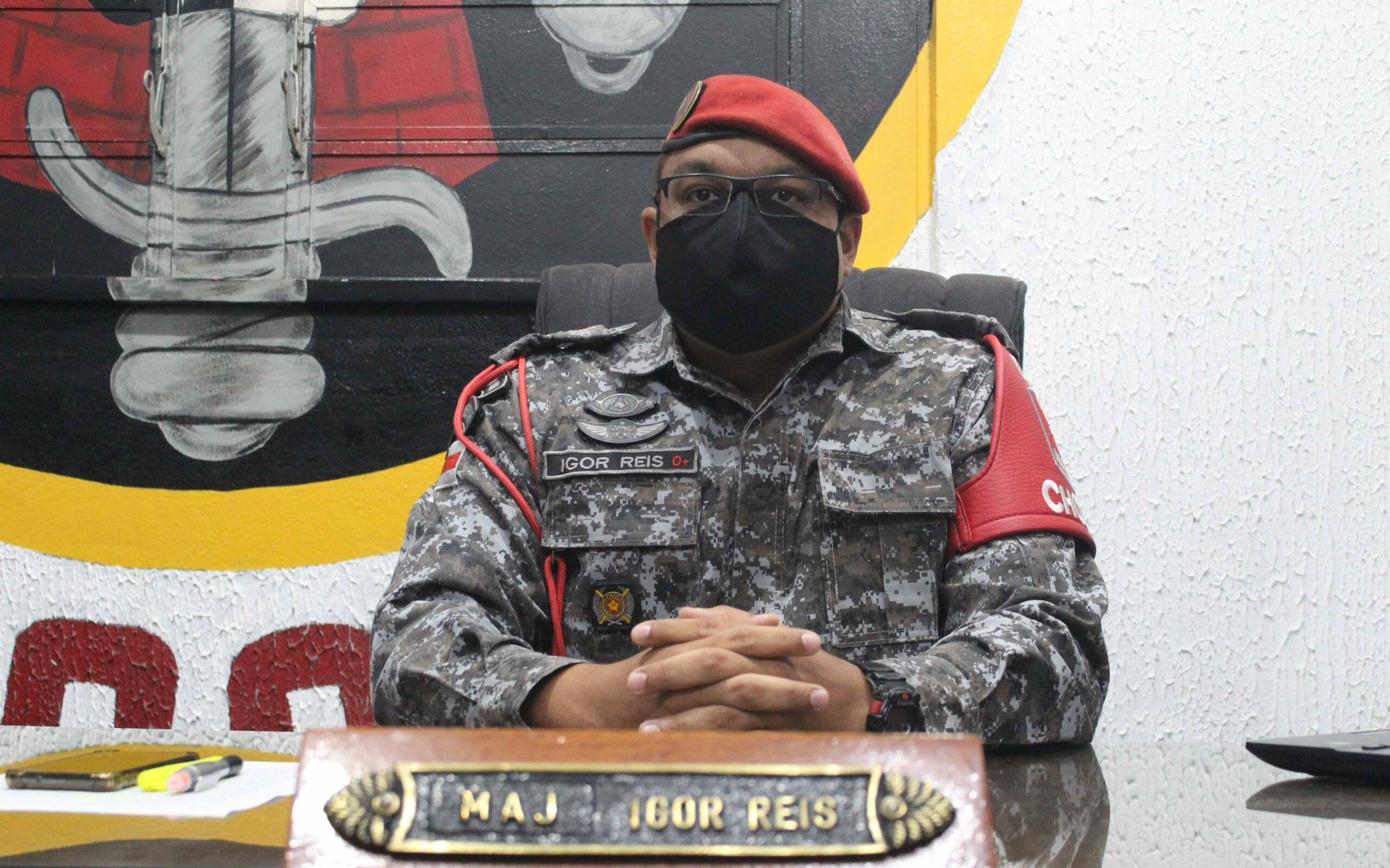 O comandante do Batalhão de Choque, major Igor Martins, destaca os lugares e as circunstâncias em que são realizados os trabalhos ostensivos e especializados do policiamento de choque.