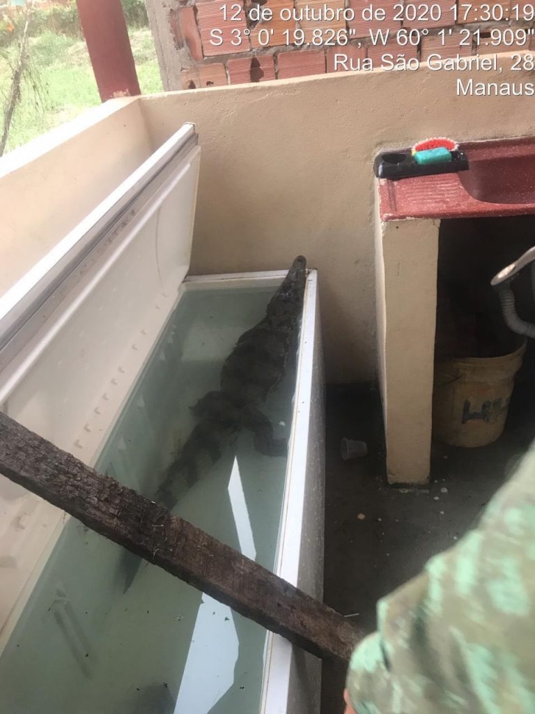 Na tarde desta segunda-feira (12/10), policiais militares do Comando de Policiamento Ambiental (CPAmb), por meio do Batalhão de Policiamento Ambiental (BPAmb), realizaram o resgate de um jacaré-tinga. O animal foi capturado por moradores da comunidade Jesus me Deu, localizada na zona norte de Manaus.