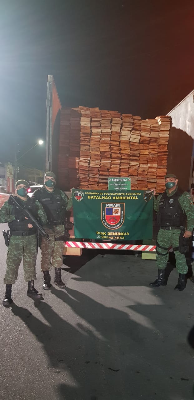 O Comando de Policiamento Ambiental (CPAMB), por meio do Batalhão de Policiamento Ambiental (BPAM), apreendeu caminhão com madeira ilegal nesta sexta-feira (22/05), no Adrianópolis, zona centro-sul da capital.