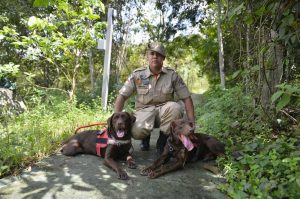 No Amazonas, atualmente, há quatro cães da raça labrador e um cão da raça pastor alemão da cor preta, que é bastante raro.