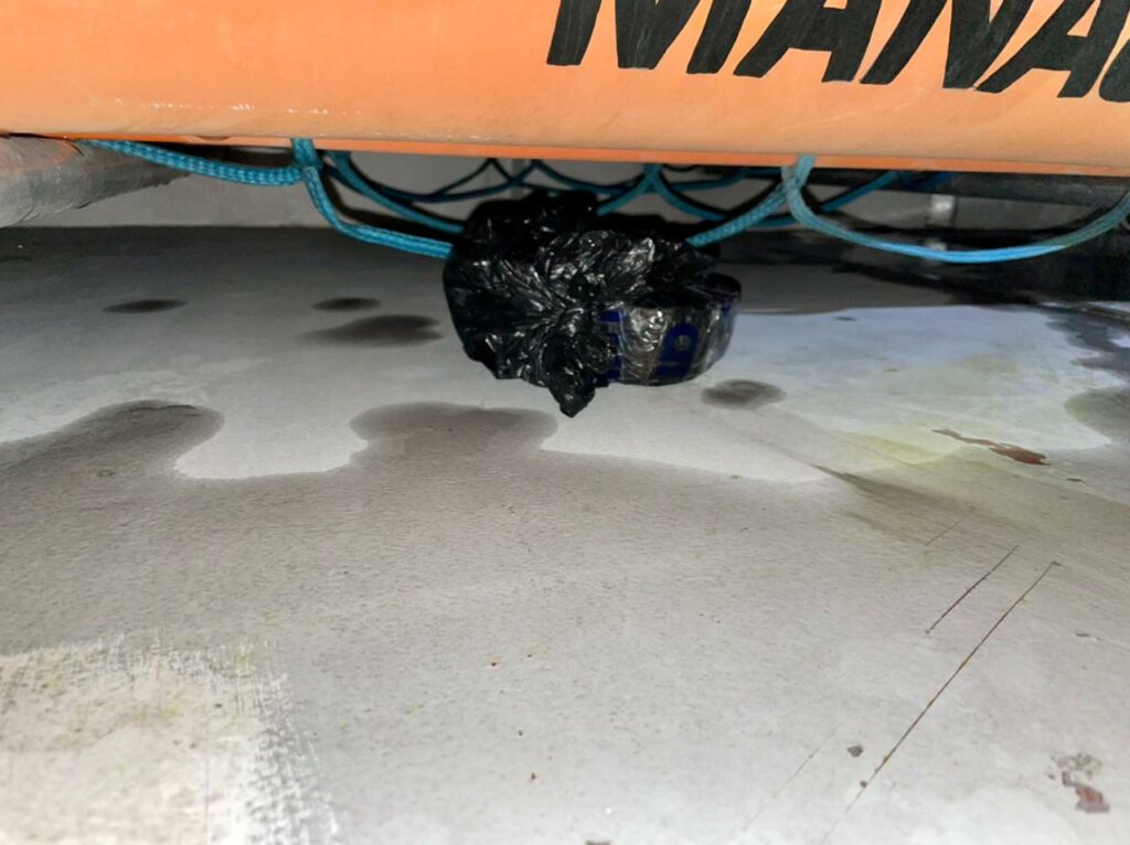 De acordo com os policiais, durante a abordagem na embarcação foi feita a revista pelos agentes e, em seguida, o cão policial foi conduzido no barco para farejar e verificar se havia entorpecentes ou outro material ilícito sendo transportado. Quando estava próxima ao bote salva-vidas, o cão Tyson sentou ao lado do bote, o que indica aos seus condutores que no local havia droga. Um quilo de cocaína foi apreendido.