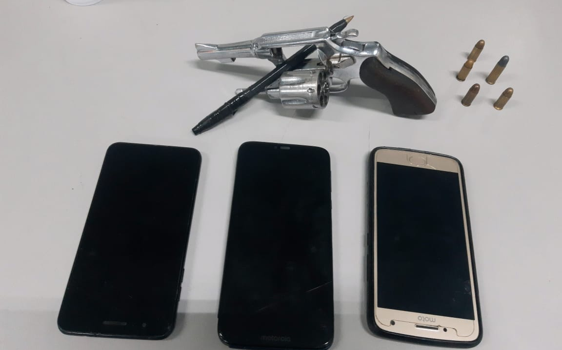 Na revista pessoal, a polícia encontrou um revólver calibre 32, com cinco munições intactas e três celulares. Eles foram conduzidos ao 6º Distrito Integrado de Polícia(DIP).