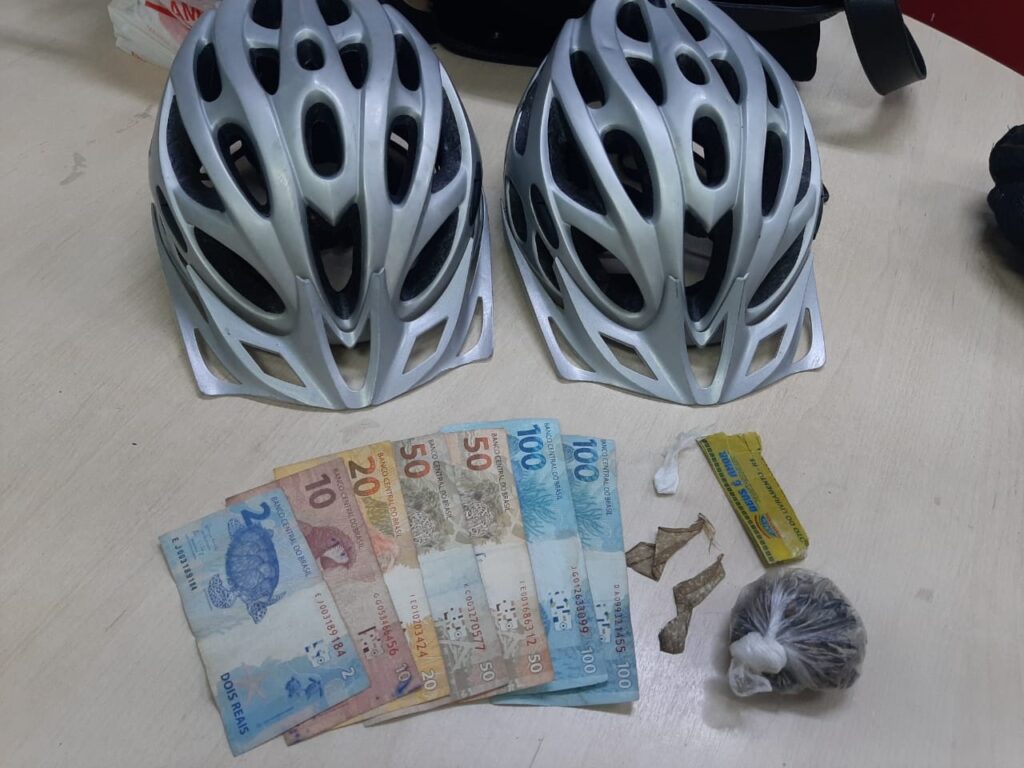 Após abordagem, durante revistas, foram encontrados em posse deles uma porção média de maconha, uma porção de cocaína, um aparelho celular, e a quantia de R$ 333 em espécie.