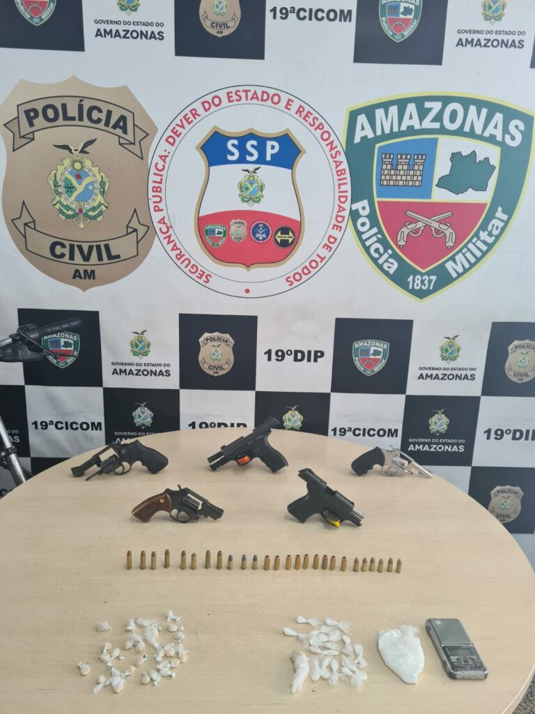 Oito pessoas foram presas com armas e drogas por agentes da Secretaria de Segurança Pública do Amazonas (SSP-AM) durante a operação “Cidade mais Segura”, deflagrada nesta sexta-feira (05/11) e neste sábado (06/11), nos bairros Tarumã e Santo Agostinho, ambos na zona oeste de Manaus. A ação é uma determinação do secretário de Segurança Pública, general Carlos Alberto Mansur.