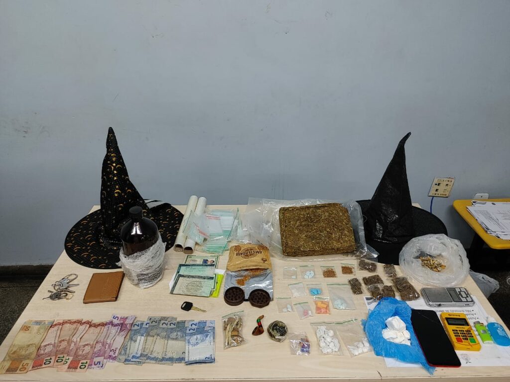 Os policiais foram acionados após denúncias de que o infrator realizava venda de todos os tipos de entorpecentes na modalidade delivery, via WhatsApp, entre drogas ilícitas convencionais e sintéticas.