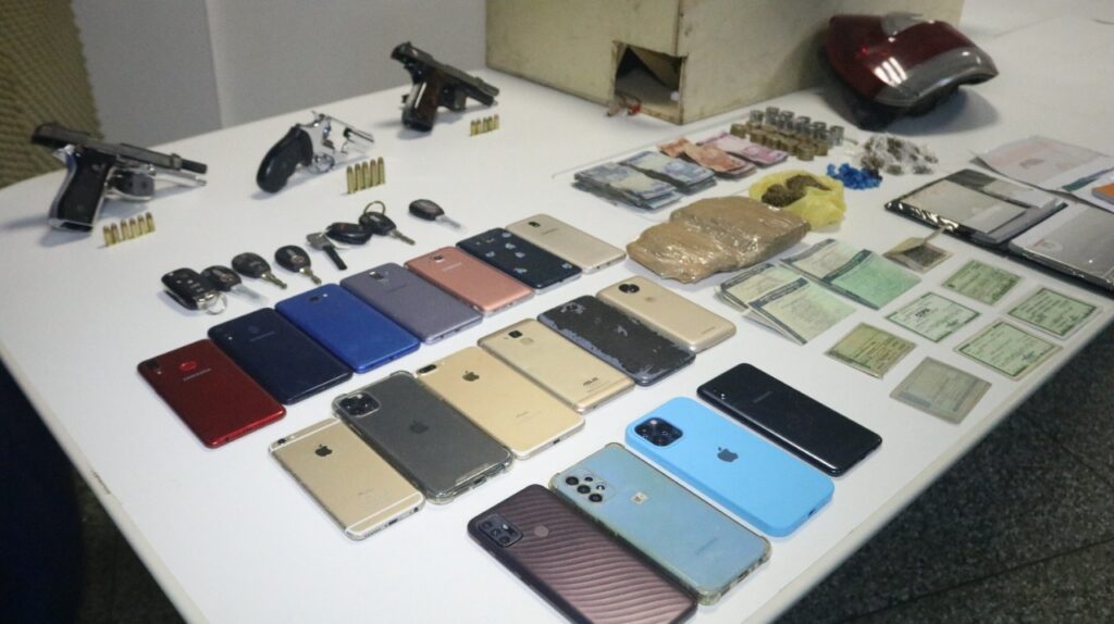 “Além dos entorpecentes comercializados, os suspeitos cometiam homicídios de membros rivais. Nós conseguimos desmantelar uma parte do grupo, que realizava roubos e furtos de veículos e aparelhos celulares na capital. Inclusive, prendemos um dos infratores com uma grande quantidade de celulares roubados e furtados”, ressaltou o capitão.