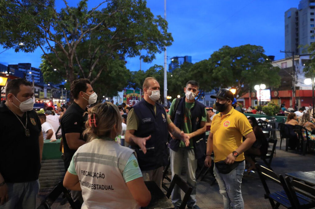 “O objetivo da nossa visita hoje nesses locais é exatamente isso, ver se estão aglomerando, ver se estão descumprindo o decreto, ver se as pessoas estão de máscara, mantendo o distanciamento social”, disse o delegado.