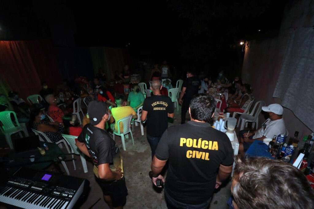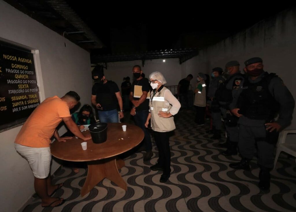No entanto, no turno noturno, as ações foram para além de orientações. As forças integradas vistoriaram 16 estabelecimentos comerciais nas zonas leste, norte e sul de Manaus. Destes, 10 locais foram orientados a finalizarem suas atividades, sendo um deles um bar, que foi autuado por promover uma festa clandestina. E uma outra festa foi encerrada por denúncias de aglomeração feitas pela vizinhança.