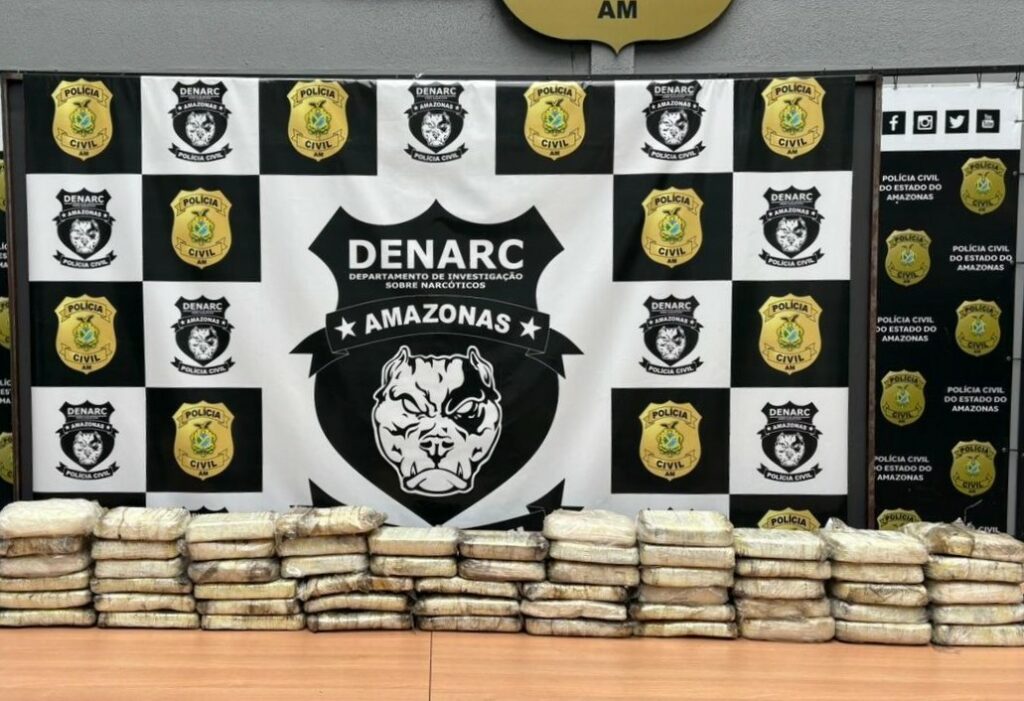A Polícia Civil do Amazonas (PC-AM), por meio do Departamento de Investigação sobre Narcóticos (Denarc), com apoio da Delegacia Fluvial (Deflu) e da Receita Federal, por meio do cão farejador, apreendeu, na quinta-feira (30/10), 60 quilos de cocaína avaliados em R$ 4,5 milhões. O material foi encontrado dentro de rodas de uma caminhonete.