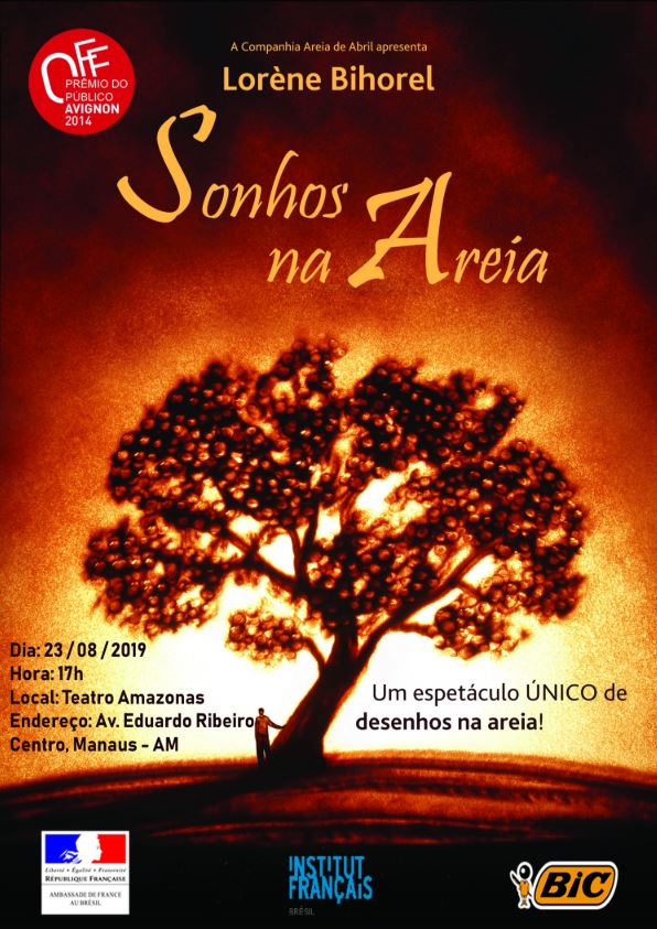 “Sonhos na Areia” é um espetáculo emocionante de histórias contadas com desenhos na areia que encanta crianças e adultos. Premiado no Festival Off d’Avignon 2014, com mais de 600 apresentações na França, a obra conta 12 histórias em diferentes lugares do mundo. A jovem artista Loréne Bihorel apresenta uma nova e cativante forma de arte, utilizando uma mesa luminosa transmitida em tela grande ao público. Os desenhos nascem em alguns segundos e se transformam sob os olhos dos espectadores, tornando a experiência em um momento mágico e único.
