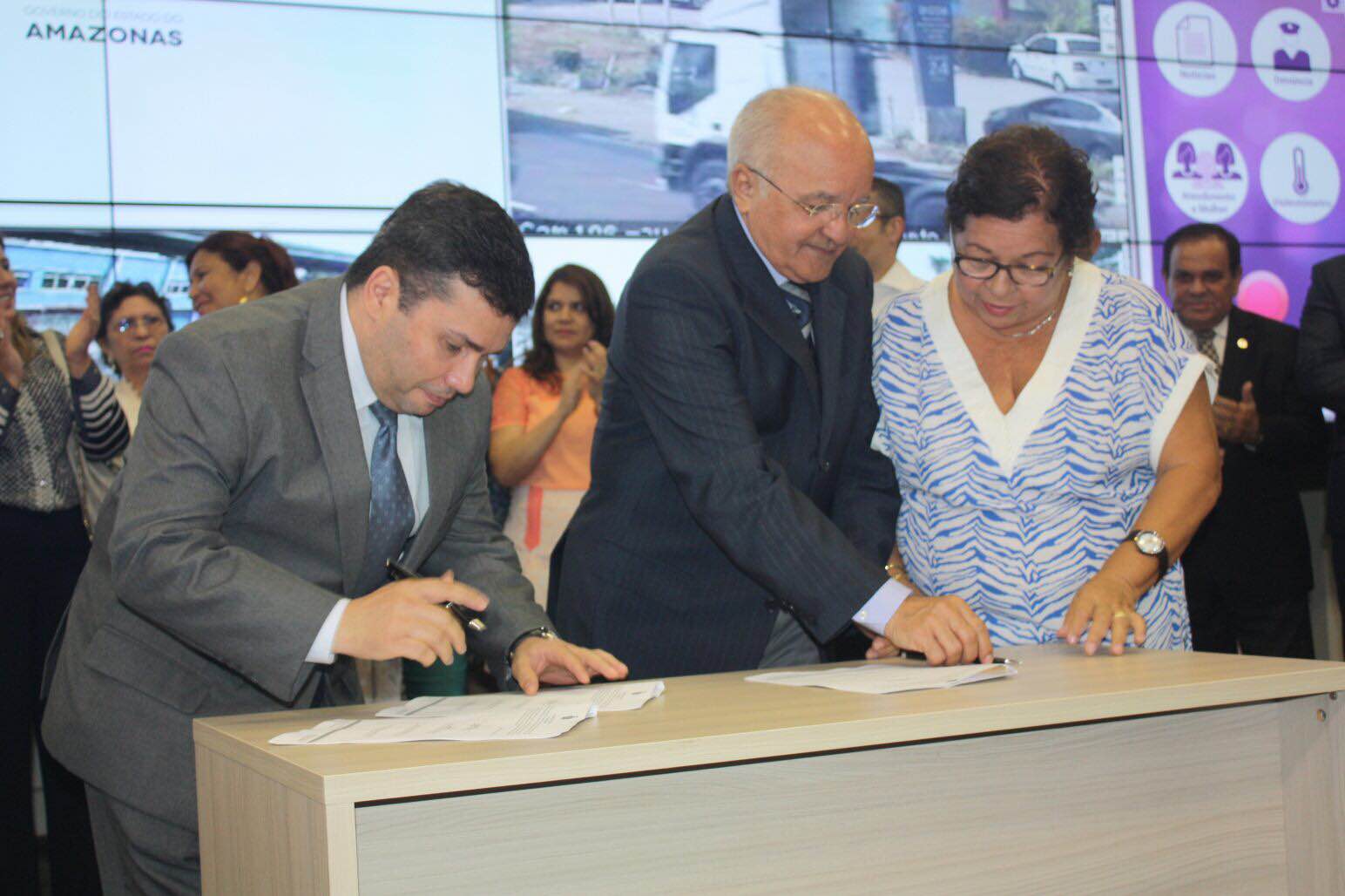 Termo de Cooperação – A Sejusc, por meio da Secretaria Executiva de Políticas para Mulheres, e a SSP-AM, por meio da Secretaria Executiva Adjunta de Planejamento e Gestão Integrada, firmaram, na solenidade no CICC, termo de cooperação para operacionalização das novas ferramentas de combate à violência contra a mulher. Por meio do termo, é estabelecido protocolo de atendimento de demandas geradas a partir de denúncias feitas por meio do Portal da Mulher Amazonense e do aplicativo “Alerta Rosa”.