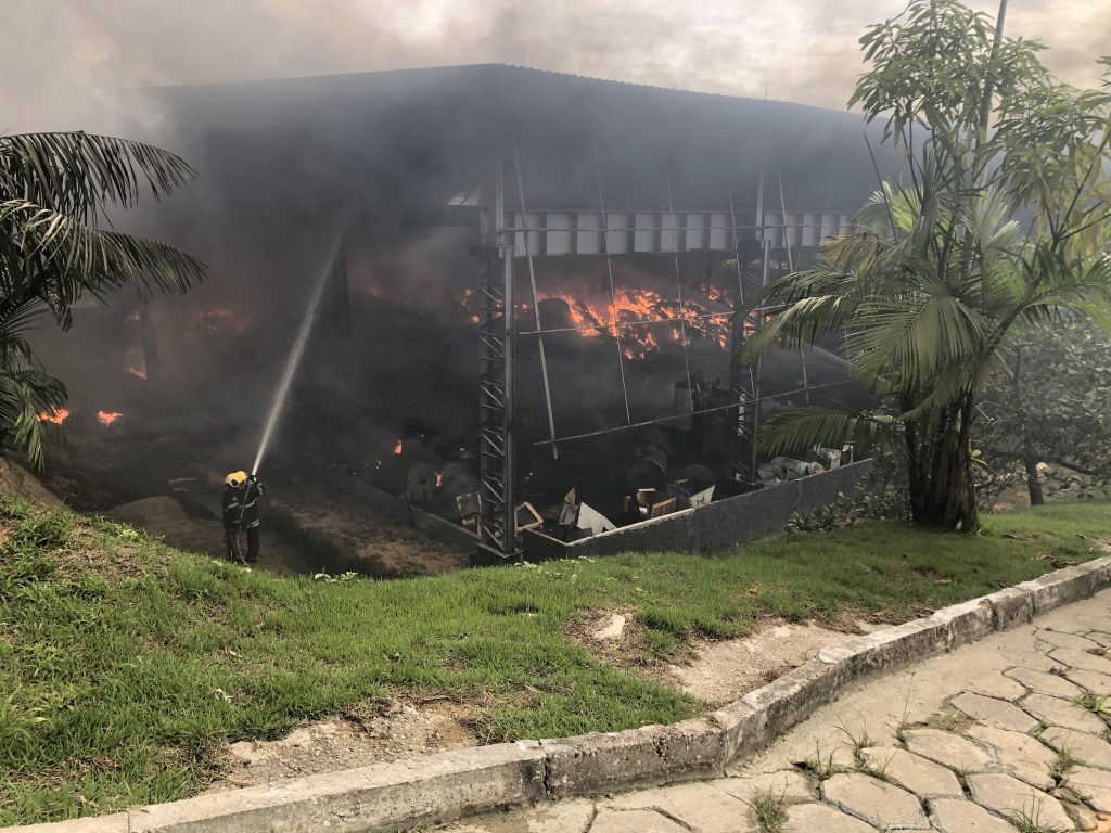 Corpo de Bombeiros atua em incêndio de grande proporção em usina