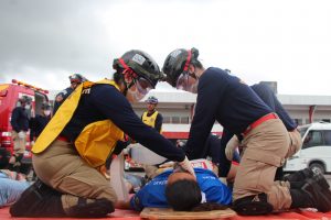 O simulado – No estágio, foi aplicado o método Start de triagem simples e tratamento rápido. Nessa metodologia de atendimento, as vítimas envolvidas no sinistro são separadas em lonas em diferentes cores para melhor avaliação na triagem.