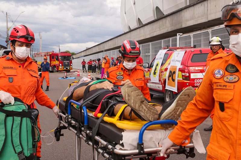 A atividade integrou a programação do Curso de Salvamento Veicular (CSV), promovido pela corporação, e ocorreu na rua Jornalista Flaviano Limongi, no bairro Dom Pedro, zona centro-oeste de Manaus. No exercício, duas pessoas estavam presas às ferragens do veículo de passeio, enquanto as outras 12 vítimas, simuladas no micro-ônibus, passaram por triagem e foram encaminhadas à área de concentração de vítimas.