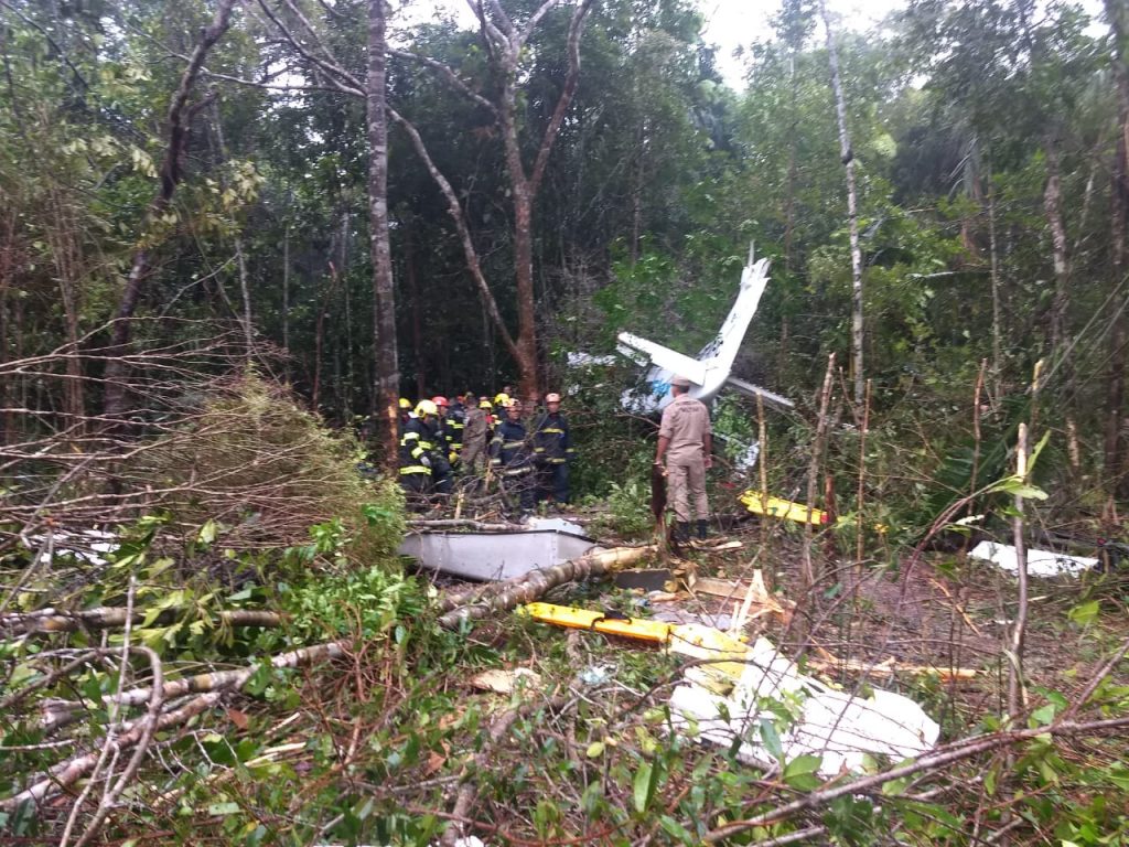 Corpo de Bombeiros em resgate a vitimas de acidente de avião. FOTO: Bombeiros.