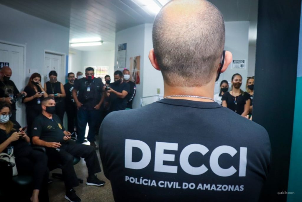 Durante coletiva de imprensa, nesta sexta, na sede da Delegacia Geral, bairro Dom Pedro, zona centro-oeste de Manaus, a delegada-geral e o delegado-geral adjunto da Polícia Civil, Emília Ferraz e Tarson Yuri Soares, juntamente com os diretores dos Departamentos de Polícia Metropolitana e do Interior (DPM e DPI), delegados Alessandro Albino e Bruno Fraga, e a delegada Andrea Nascimento, titular da DECCI, além da secretária executiva da Secretaria de Estado da Cidadania, Direitos Humanos e Cidadania (Sejusc), Edmara Cambaúva, apresentaram o balanço da operação.