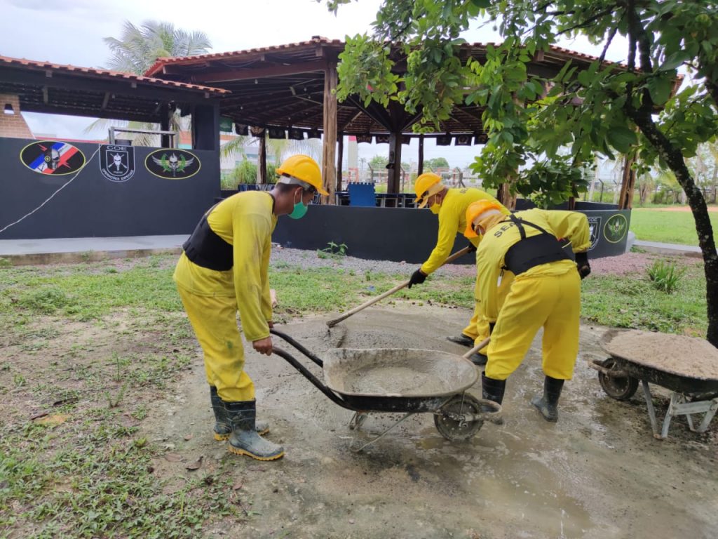 Nove detentos do Centro de Detenção Provisória de Manaus (CDPM 2) realizam trabalhos extramuros na Companhia de Operações Especiais da Polícia Militar do Amazonas (COE/PMAM). Os internos fazem parte do programa de ressocialização “Trabalhando a Liberdade”, implementado pela Secretaria de Estado de Administração Penitenciária (Seap).