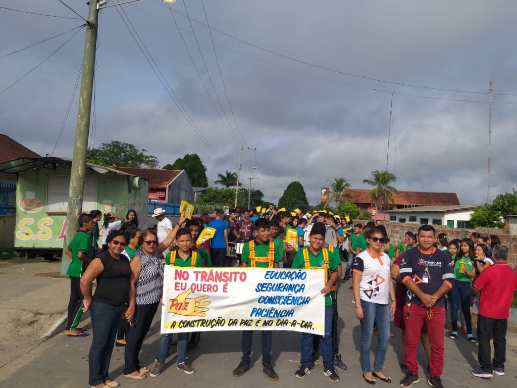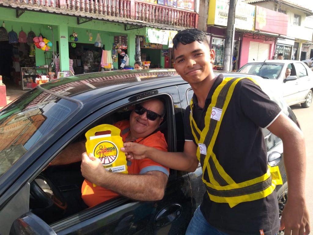 O Departamento Estadual de Trânsito do Amazonas (Detran-AM) participou, na manhã desta quarta-feira (09/10), do projeto “Jovem Multiplicador: Ação entre pares pela paz no trânsito”, realizado no município de Rio Preto da Eva (a 80 quilômetros de Manaus em linha reta). O projeto idealizado e executado pela Secretaria de Estado de Educação (Seduc) abriga várias ações com o objetivo de promover a paz no trânsito por meio da conscientização de jovens e adultos, de escolas e comunidades em geral.