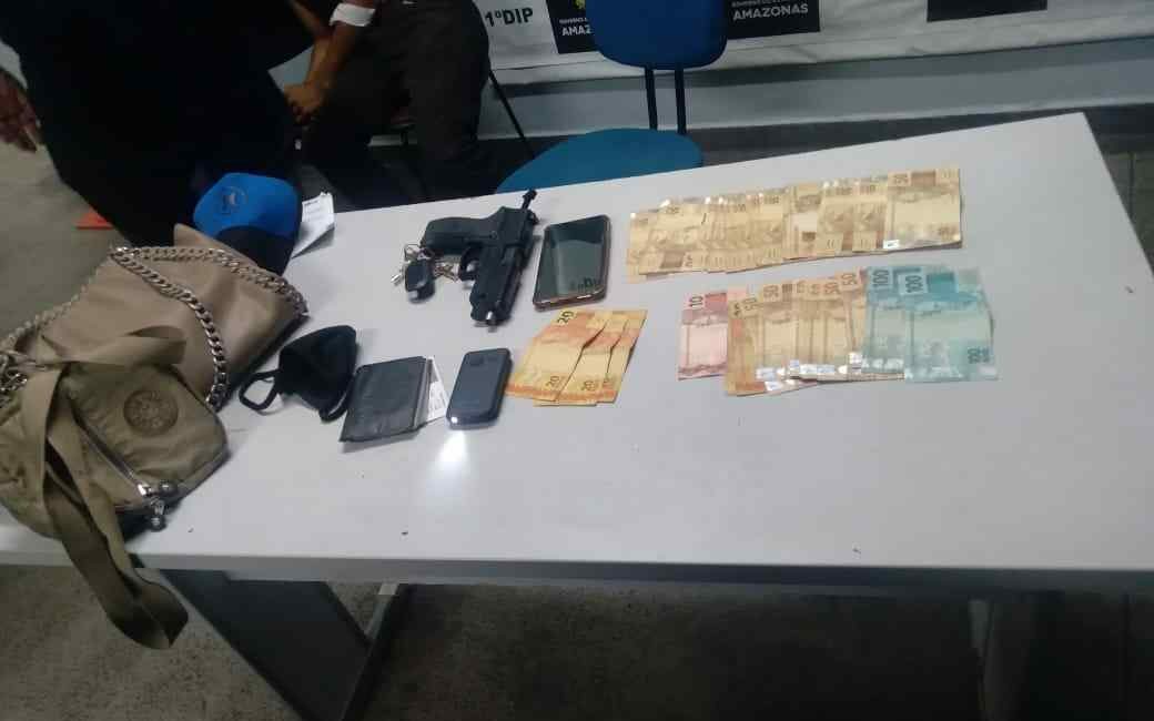 Os policiais foram informados que os dois homens, portando um simulacro de arma de fogo, teriam assaltado uma mulher que saía de um banco localizado na avenida Djalma Batista. Eles teriam subtraído uma bolsa de couro contendo vários pertences da vítima, incluindo seu aparelho celular e uma carteira feminina contendo documentos, cartões de crédito e R$ 1.710 em espécie.