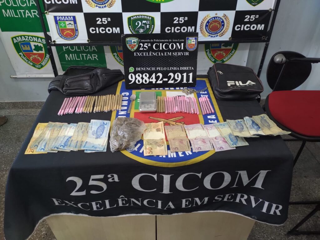 Equipe da 25ª Companhia Interativa Comunitária (Cicom), da Polícia Militar do Amazonas (PMAM), na manhã desta terça-feira (24/08) deteve dois homens suspeitos de comercializar entorpecentes, na rua Júlia Mafra, bairro Zumbi 2, zona leste de Manaus.