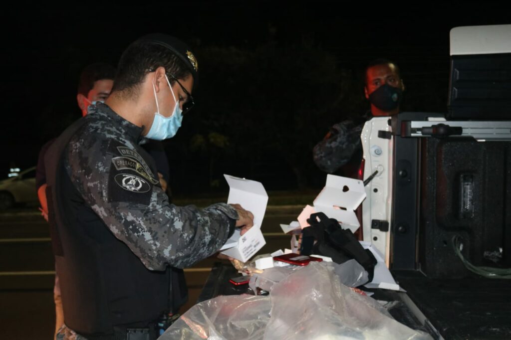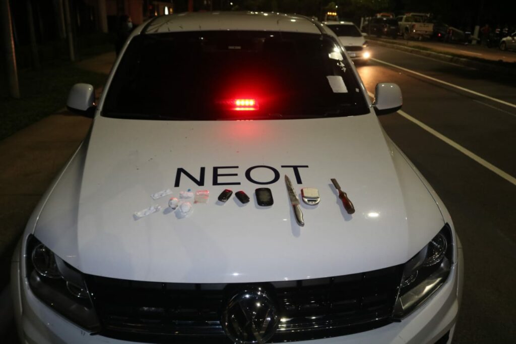 Em outra situação atípica, os agentes do Neot se depararam com um condutor que, ao perceber a barreira policial, abandonou o veículo e fugiu. “Ele (condutor) subiu com o carro no meio-fio, o carro ficou preso, e o condutor saiu correndo. Neste veículo foi encontrado balança de precisão, quatro celulares e equipamentos para arrombar veículo”, disse Mansur.
