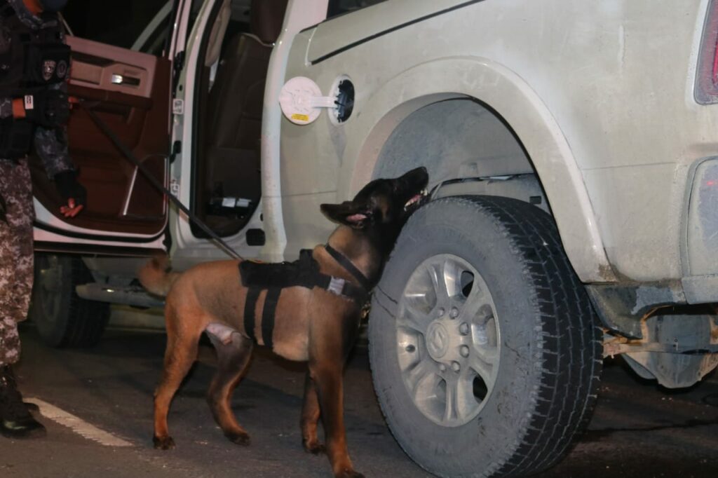 De acordo com o coordenador do Neot, Victor Mansur, foi feita uma abordagem a um veículo Dodge Ram, de cor branca, e nele foram encontradas drogas. “Com um condutor, na busca dentro do seu veículo, foram encontradas aproximadamente 200 gramas de cocaína, ecstasy, LSD e comprimidos de viagra”, explicou.