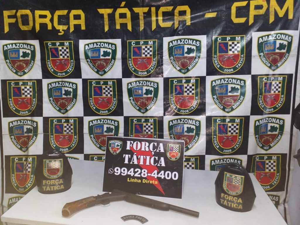 Policiais militares das Rondas Ostensivas Cândido Mariano (Rocam) apreenderam, no bairro Lago Azul, zona norte, um adolescente portando uma arma de fogo. Com ele, foram encontradas uma espingarda calibre 12, duas trouxinhas de entorpecentes, um celular e R$ 21 em espécie. O adolescente foi levado para o 6º DIP.