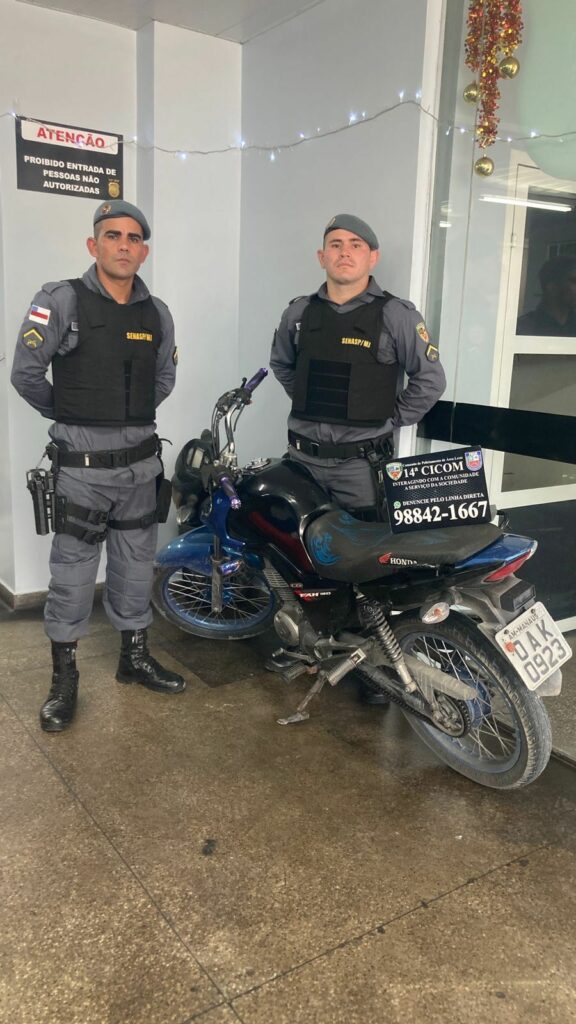 Também foi recuperada uma motocicleta de marca Honda preta de placa OAK-0923, no bairro Jorge Teixeira, zona leste. O veículo tinha restrição de furto. Os policiais prenderam dois homens em flagrante por roubo e apreenderam um simulacro de arma de fogo.