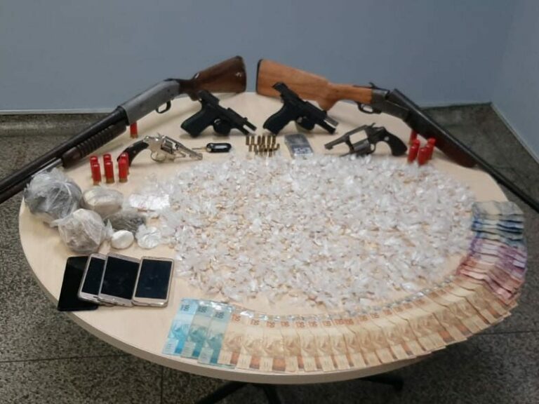 Na operação, foram apreendidas duas pistolas (calibres 40 e 380), dois revólveres (calibres 32 e 38) e duas espingardas (calibres 12 e 16), além de 31 munições de diversas armas, 1.129 porções de entorpecentes, quatro telefones celulares e a quantia de R$1,3 mil em espécie. Os policiais também apreenderam um táxi Siena, branco, placa JXW-9831.